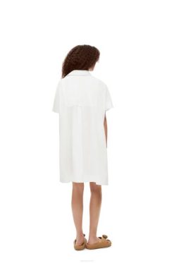 Vestido túnica de manga curta em popeline de algodão texturizado com bolso de patch com anagrama de couro costurado.