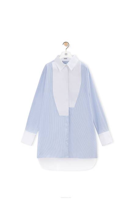 lilás/branco 80ZJ891 mulheres camisa assimétrica listrada em popeline de algodão listrado Loewe