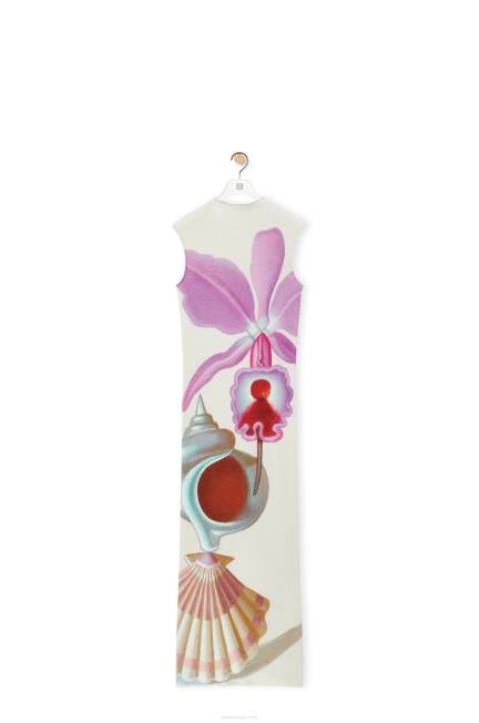 vestido tubinho confeccionado em jersey leve de algodão canelado com estampa inspirada na pintora surrealista espanhola marujamallo e sua série ‘natureza viva’.