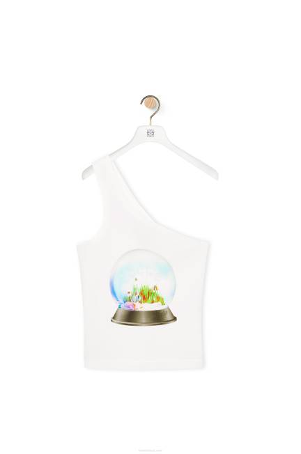 camiseta assimétrica em jersey técnico com estampa de globo de neve e logotipo da Loewe.