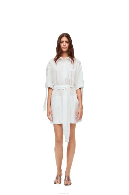 branco óptico 80ZJ1053 mulheres mini vestido workwear em algodão Loewe