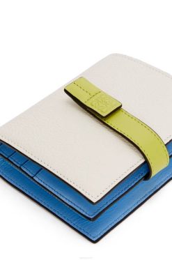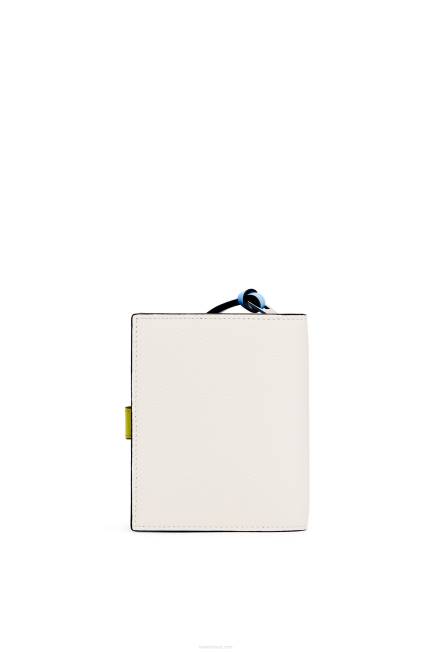 branco suave/amarelo limão 80ZJ1229 mulheres carteira compacta com zíper em couro de bezerro granulado macio Loewe