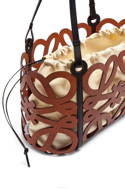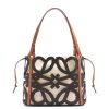 bolsa tote versátil confeccionada em couro de bezerro recortado em padrão anagrama com alças de couro de bezerro e bolso interno com cordão em lona de algodão espinha de peixe.