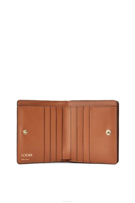 carteira compacta em couro de bezerro de seda com padrão de anagramas em relevo.