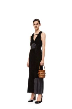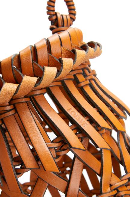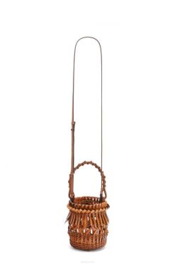 bronzeado 80ZJ177 mulheres bolsa bucket pequena com franjas em couro de bezerro Loewe