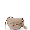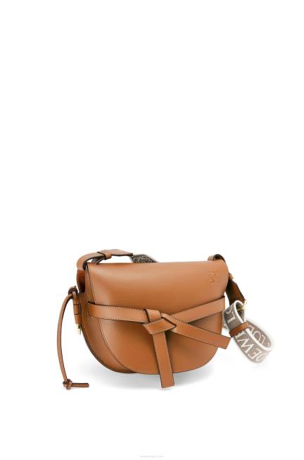 Meticulosamente trabalhada em couro de bezerro macio, o gate dual exibe a incomparável habilidade artesanal de couro da loewe com uma pulseira de couro com nó costurado na sela e um pino de metal com trava lateral que dá nome à bolsa. esta versão pequena tem uma alça de ombro ajustável em couro de bezerro e jacquard com padrão loewe repetido.