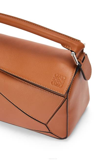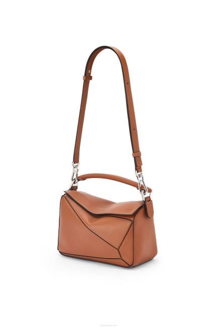 a bolsa quebra-cabeça é a bolsa de estreia da loewe do diretor criativo jonathan anderson. uma forma cubóide e uma técnica de corte precisa criam as linhas geométricas distintas do quebra-cabeça. esta versão pequena é confeccionada em couro de bezerro clássico