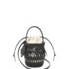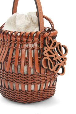 bronzeado 80ZJ89 mulheres bolsa bucket pequena com franjas em couro de bezerro Loewe
