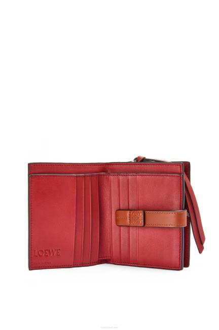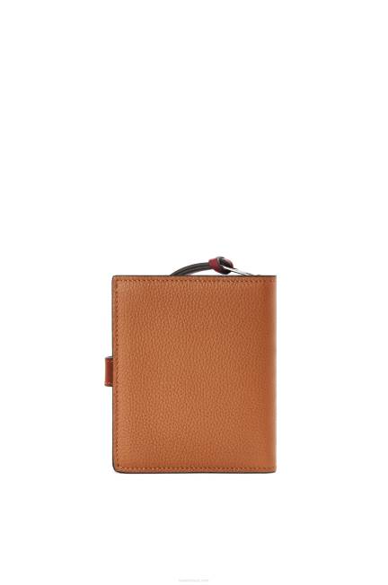 caramelo claro/pecã 80ZJ1257 mulheres carteira compacta com zíper em couro de bezerro granulado macio Loewe