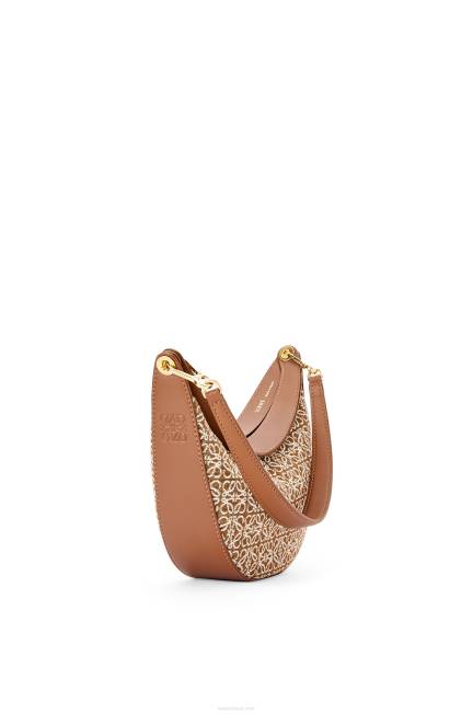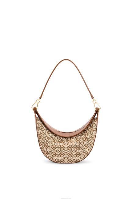 castanho/pecã 80ZJ492 mulheres bolsa luna pequena em jacquard anagrama e couro de bezerro clássico Loewe
