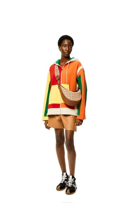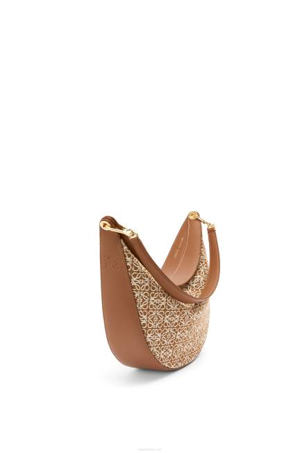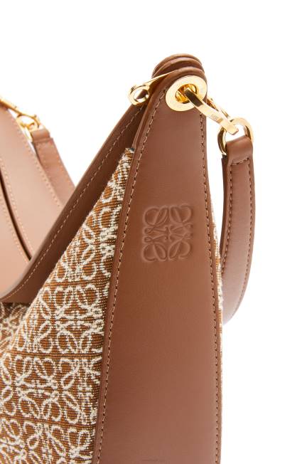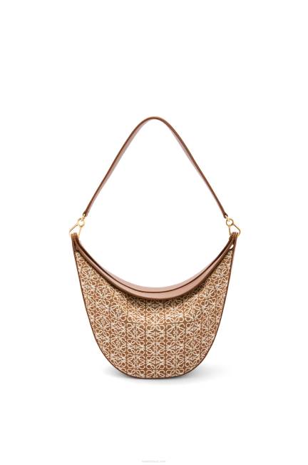 a loewe luna é uma bolsa hobo meia-lua meticulosamente trabalhada com uma silhueta escultural e um fecho de lábio duplo curvo. um ilhó deslizante oculto permite que a bolsa seja personalizada com um pingente ou uma alça adicional. esta versão é confeccionada em jacquard anagrama e couro de bezerro clássico.