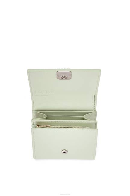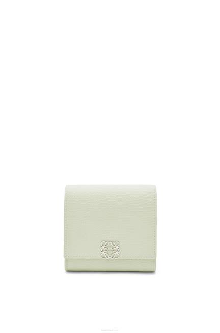 céu claro 80ZJ1233 mulheres carteira compacta com aba anagrama em couro de bezerro granulado Loewe