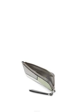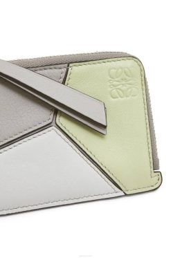 cinza acinzentado/claro celadon 80ZJ1348 mulheres porta-cartões de moedas de quebra-cabeça em couro de bezerro clássico Loewe