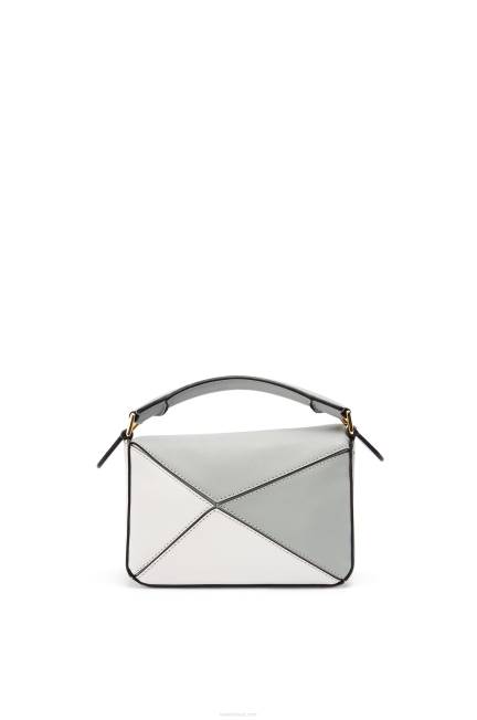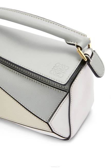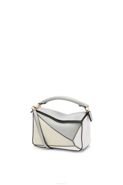 a bolsa quebra-cabeça é a bolsa de estreia da loewe do diretor criativo jonathan anderson. uma forma cubóide e uma técnica de corte precisa criam as linhas geométricas distintas do quebra-cabeça. esta versão mini é confeccionada em couro de bezerro contrastante