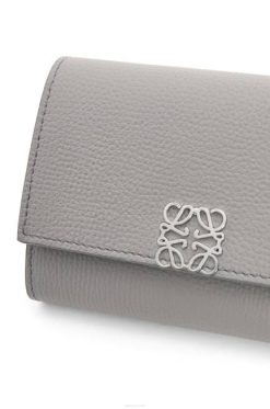 cinza pérola 80ZJ1322 mulheres porta-cartões anagrama simples em couro de bezerro granulado Loewe