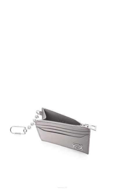 cinza pérola 80ZJ1321 mulheres Porta-chaves quadrado anagrama em couro de bezerro granulado Loewe
