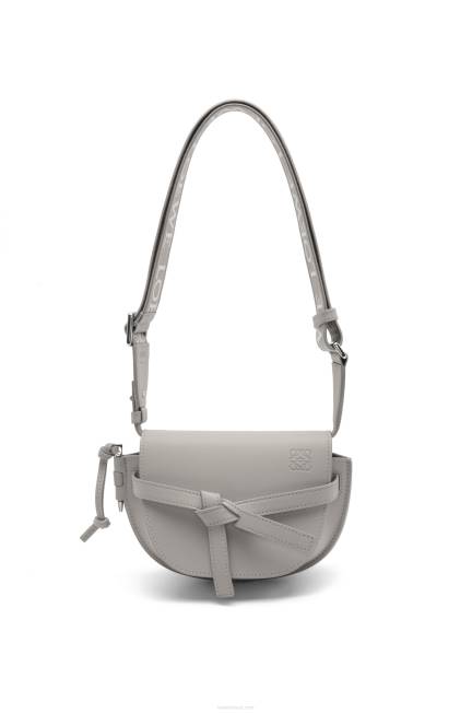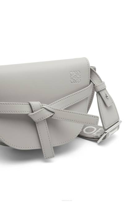 cinza pérola 80ZJ195 mulheres bolsa dupla mini gate em couro de bezerro macio e jacquard Loewe