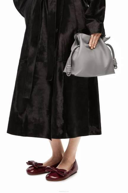 cinza pérola 80ZJ358 mulheres clutch flamenca em couro de bezerro nappa Loewe