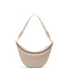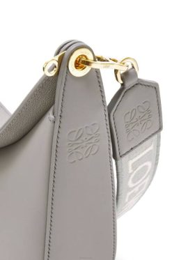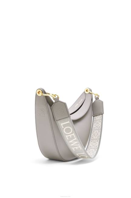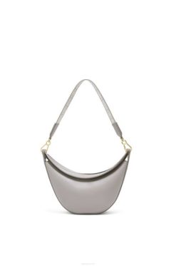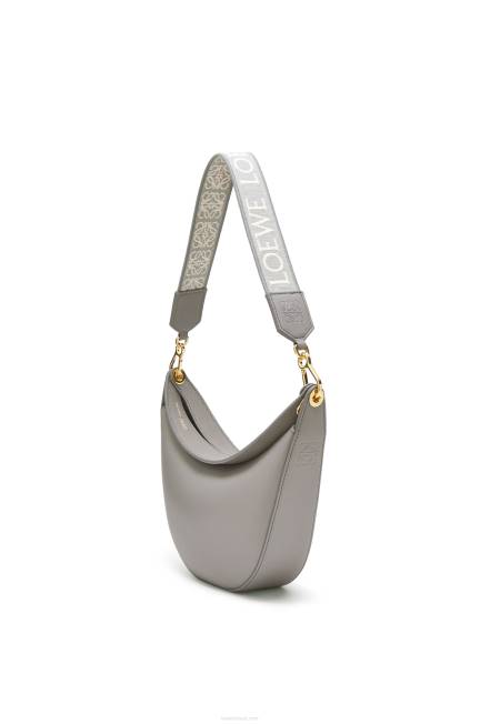 a loewe luna é uma bolsa hobo meia-lua meticulosamente trabalhada com uma silhueta escultural e um fecho de lábio duplo curvo. um ilhó deslizante oculto permite que a bolsa seja personalizada com um pingente ou uma alça adicional. esta versão pequena é confeccionada em couro de bezerro acetinado com alça em jacquard loewe.