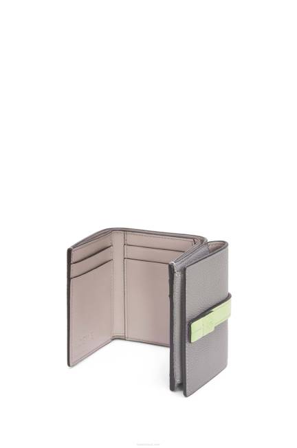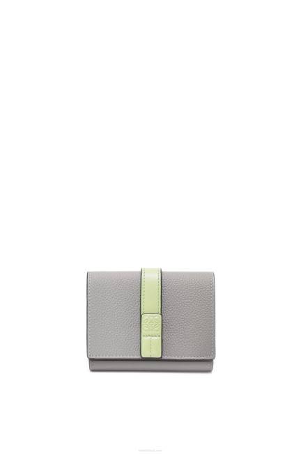 cinza perolado/verde claro claro 80ZJ1250 mulheres carteira com três dobras em couro de bezerro granulado macio Loewe
