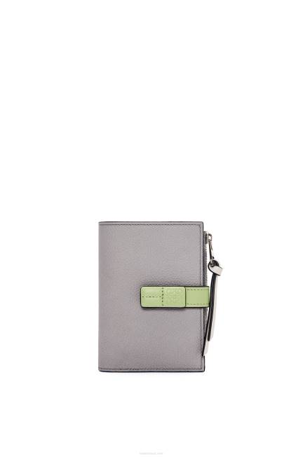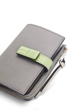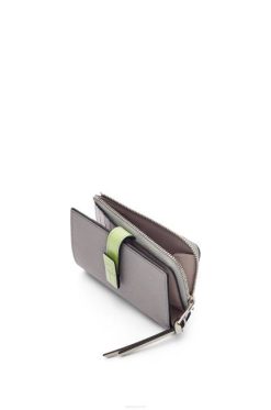 cinza perolado/verde claro claro 80ZJ1251 mulheres carteira fina dobrável com zíper em couro de bezerro granulado macio Loewe