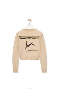 cru 80ZJ999 mulheres suéter cropped de veado em lã Loewe