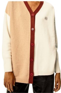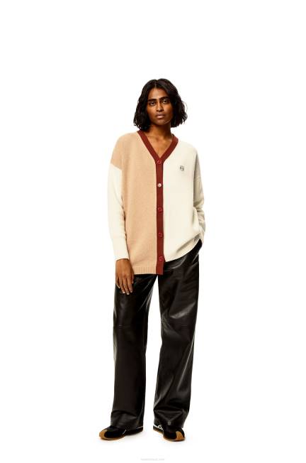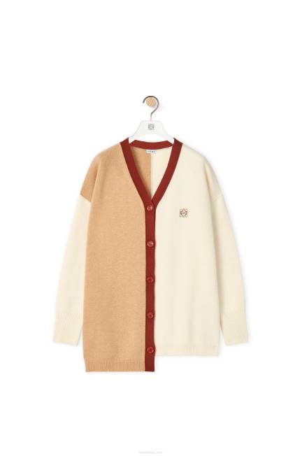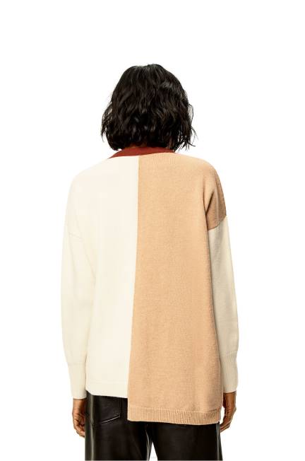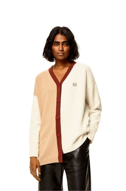 Cardigã assimétrico color block com decote em V em malha de lã de peso médio com silhueta assimétrica e gola, punhos e bainha canelados.