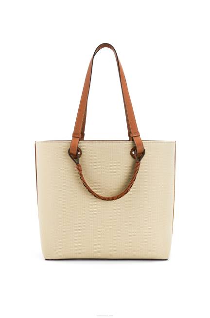 cru/castanho 80ZJ122 mulheres bolsa tote anagrama em jacquard e couro de bezerro Loewe