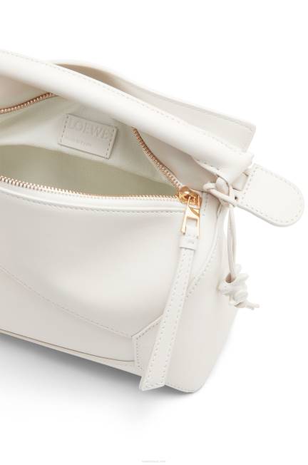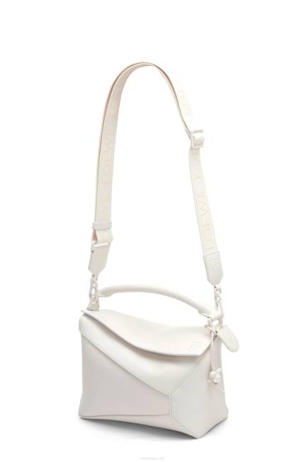 a bolsa quebra-cabeça é a bolsa de estreia da loewe do diretor criativo jonathan anderson. uma forma cubóide e uma técnica de corte precisa criam as linhas geométricas distintas do quebra-cabeça. esta versão monocromática é confeccionada em couro de bezerro acetinado com ferragens tonais brilhantes, uma pulseira jacquard tonal e um charm coelho tonal em porcelana. esta bolsa faz parte de uma coleção de edição limitada inspirada nos esmaltes monocromáticos da antiga cerâmica chinesa.
