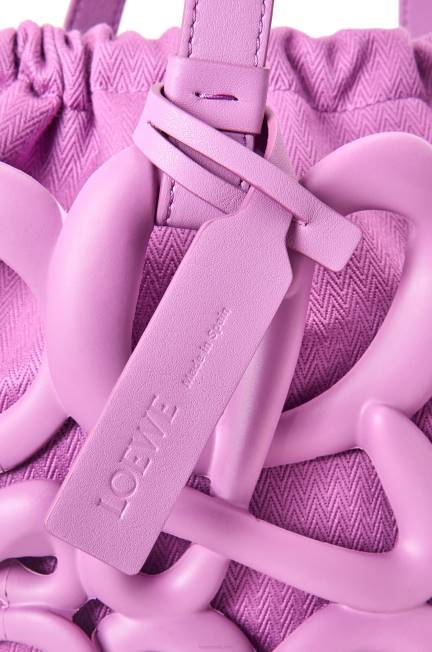 uma bolsa cesta inflada ultraleve em anagrama, confeccionada em espuma de borracha clara com alças superiores em couro de bezerro e uma bolsa removível com cordão em lona de algodão espinha de peixe tonal.