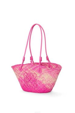 fúcsia 80ZJ56 mulheres bolsinha em formato de anagrama em palmeira iraca e couro de bezerro Loewe