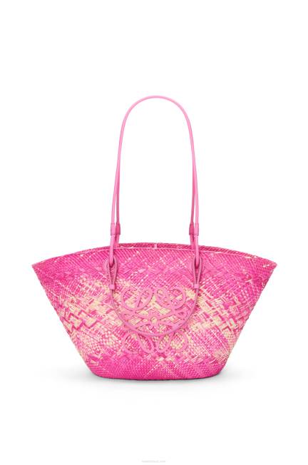 uma cesta tradicional com corpo clássico tecido à mão, alças tubulares de couro de bezerro e anagrama de couro de bezerro bordado. esta versão melange é trabalhada em palmeira iraca que é cultivada, colhida e seca ao sol na colômbia, onde é então tecida por mulheres artesãs da corporação oficio y arte, uma organização guiada por princípios de comércio justo.