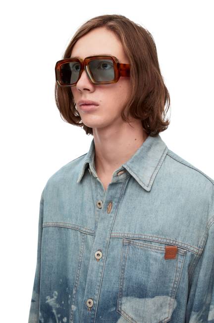 óculos de sol máscara de mergulho em acetato com aros e hastes grossas e logotipo loewe.