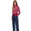 Jeans de cinco bolsos afunilados em jeans de algodão lavado com pedraria e um bolso traseiro em couro de bezerro contrastante com anagrama perfurado.