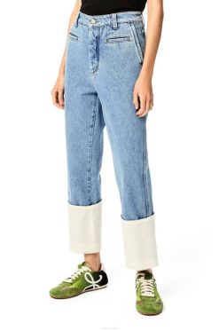 azul denim 80ZJ2 mulheres bolsa cesta grande anagrama em palmeira iraca e couro de bezerro Loewe