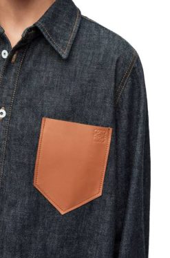 jeans azul 80ZJ896 mulheres overshirt trapézio em jeans Loewe