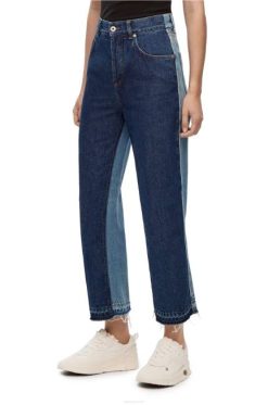calça jeans de cintura alta confeccionada em jeans de algodão lavado de peso médio.