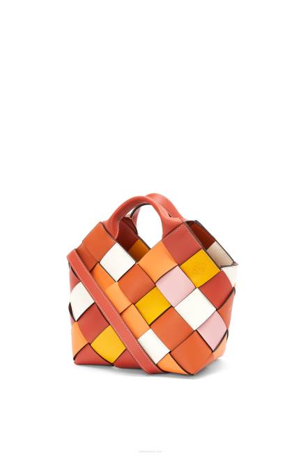 uma cesta tradicional reinterpretada em couro de bezerro clássico tecido com precisão e tiras de couro de bezerro granulado macio para criar um efeito xadrez com acabamento em alças superiores de couro de bezerro enrolado. esta bolsa é feita de couro de bezerro que de outra forma seria descartado, criando algo bonito e funcional, preservando recursos preciosos.