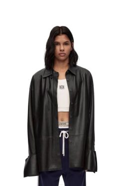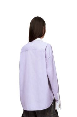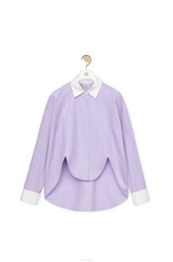 lilás/branco 80ZJ891 mulheres camisa assimétrica listrada em popeline de algodão listrado Loewe
