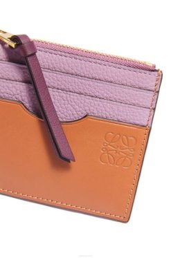 lilás/castanho sujo 80ZJ1365 mulheres Porta-cartões quadrado em couro de bezerro granulado macio com corrente Loewe