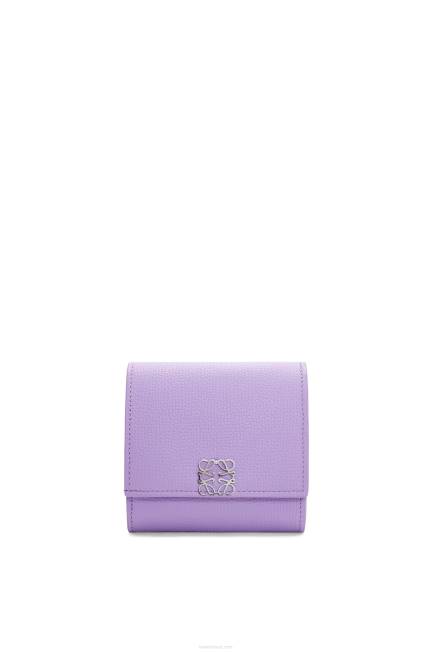 lilás claro 80ZJ1237 mulheres Carteira pequena vertical anagrama em couro de bezerro granulado Loewe