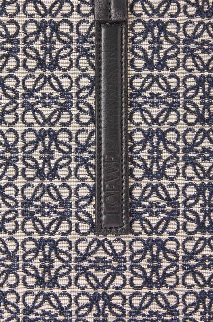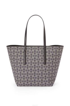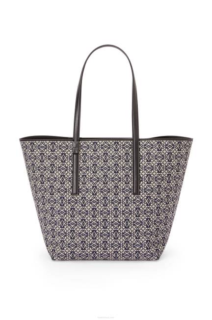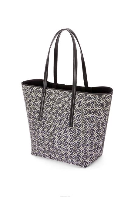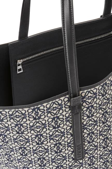 a t tote é uma bolsa leve e funcional com alças longas em couro de bezerro e uma silhueta simplificada com construção lateral invertida que dá nome à bolsa. esta versão é confeccionada em jacquard anagrama e couro de bezerro.