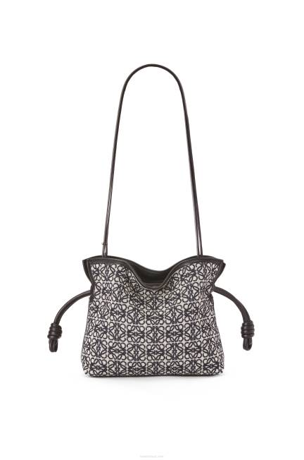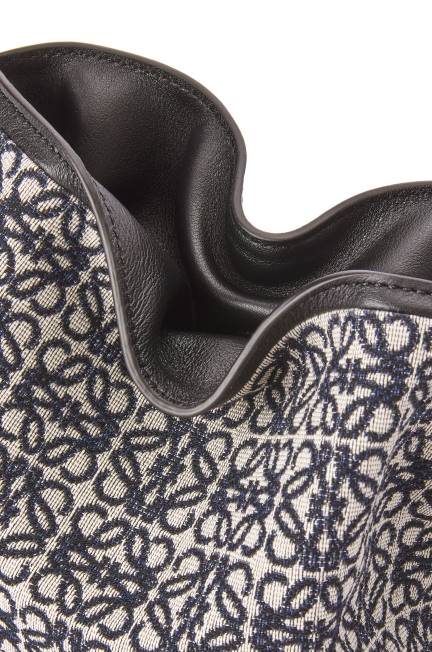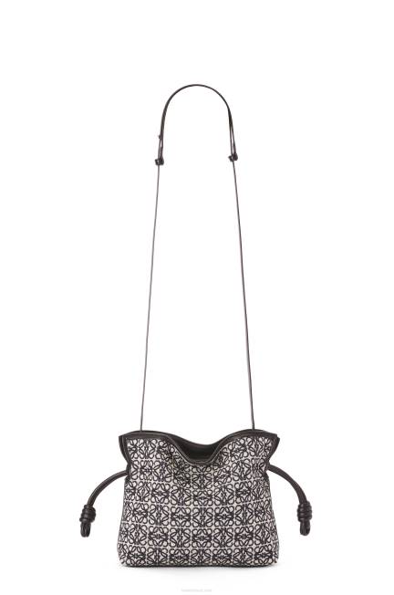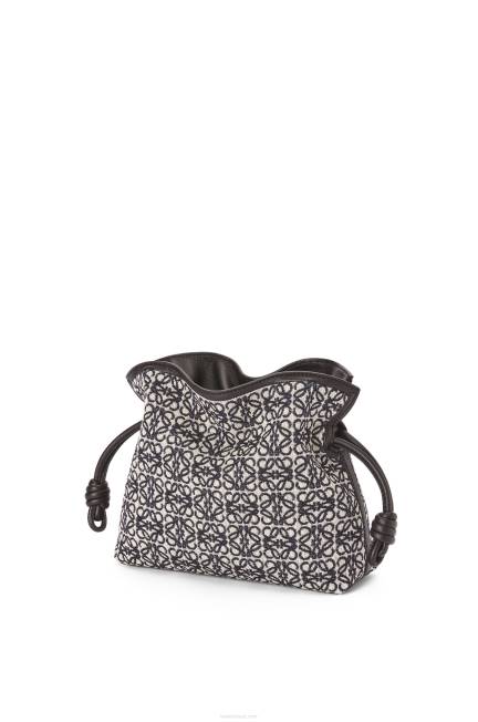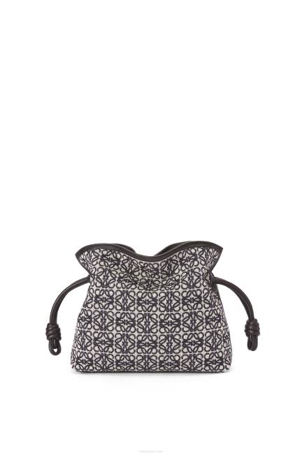 lançada na década de 1970, a clutch flamenca fecha com puxadores de cordão com acabamento em nós enrolados característicos. esta mini versão é confeccionada em couro de bezerro e lona jacquard em um padrão de anagrama repetido.
