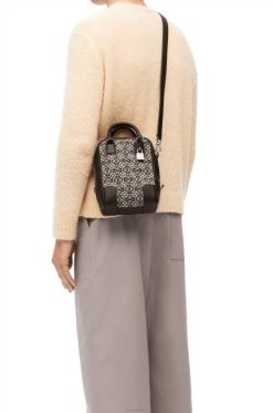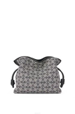 marinho/preto 80ZJ450 mulheres bolsa luna pequena em jacquard anagrama e couro de bezerro clássico Loewe