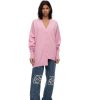suéter de gola redonda em malha leve de lã com mangas curtas e gola, punhos e bainha canelados.