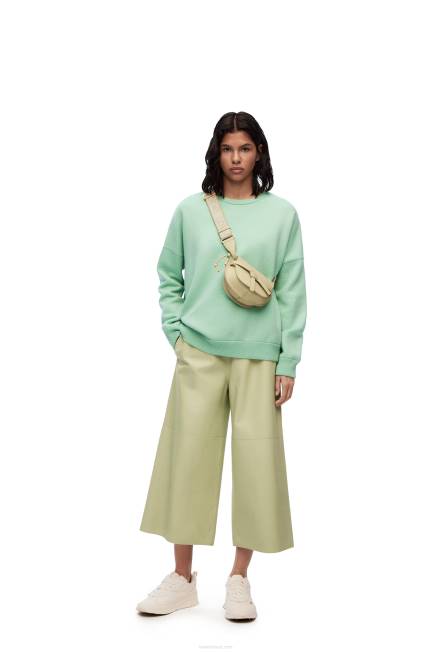 Suéter oversized em caxemira com gola careca, gola, punhos e barra canelados. aba de couro de bezerro em anagrama em relevo.