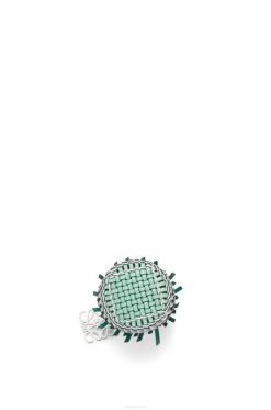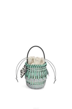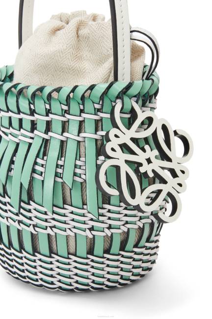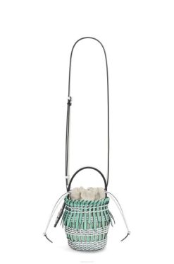 menta fresca/branco suave 80ZJ87 mulheres bolsa bucket pequena com franjas em couro de bezerro Loewe