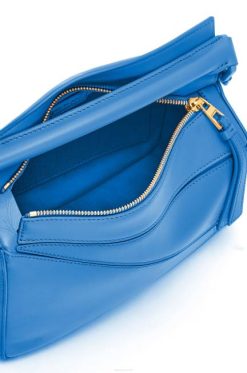 mergulho azul 80ZJ480 mulheres bolsa quebra-cabeça pequena em couro de bezerro acetinado Loewe