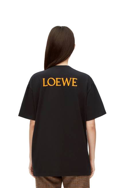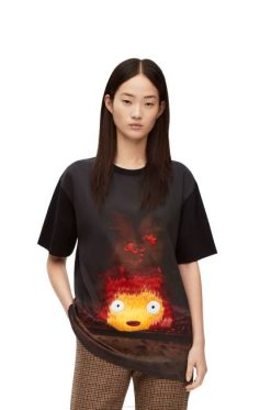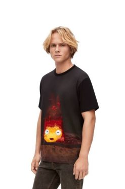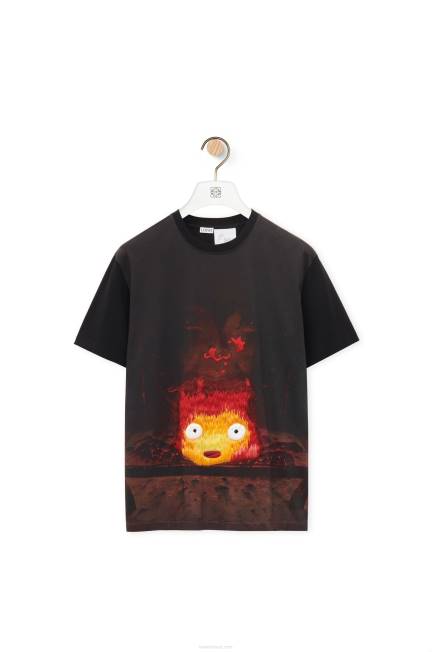 T-shirt decote careca com bordado de calcário e estampa de aplicação na frente. esta camiseta faz parte da coleção de cápsulas Movingcastle da Loewe x Howl.