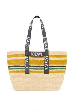 a fold shopper é uma bolsa versátil e leve com alças duplas da marca. a bolsa pode ser dobrada na base, tornando-a ideal para viagens. esta versão é confeccionada em ráfia listrada.